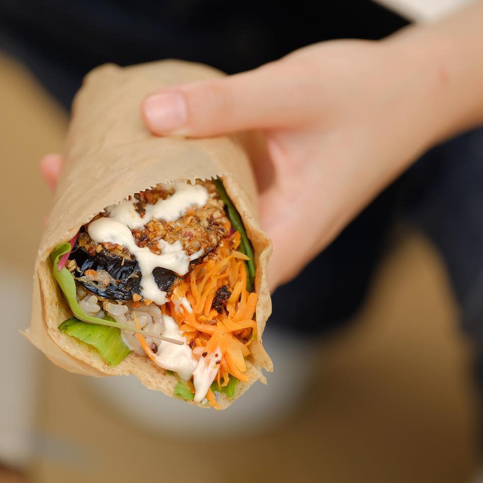 自家製の無農薬小麦粉の生地に地元の無農薬・有機野菜など、こだわりの食材をたくさん包んだラップサンド、自家製ドリンクなどを提供しています。