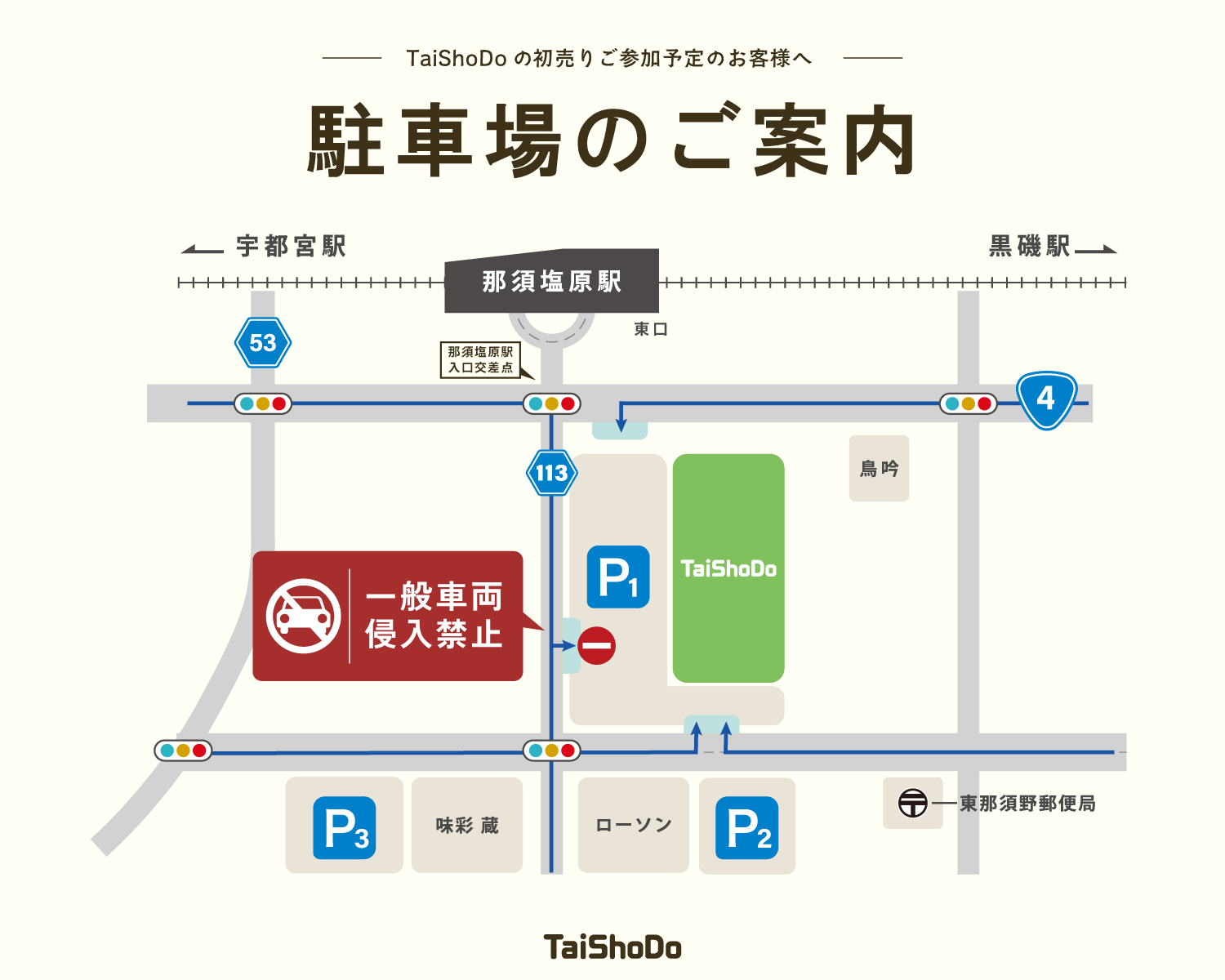 TaiShoDoの初売り 駐車場のご案内
